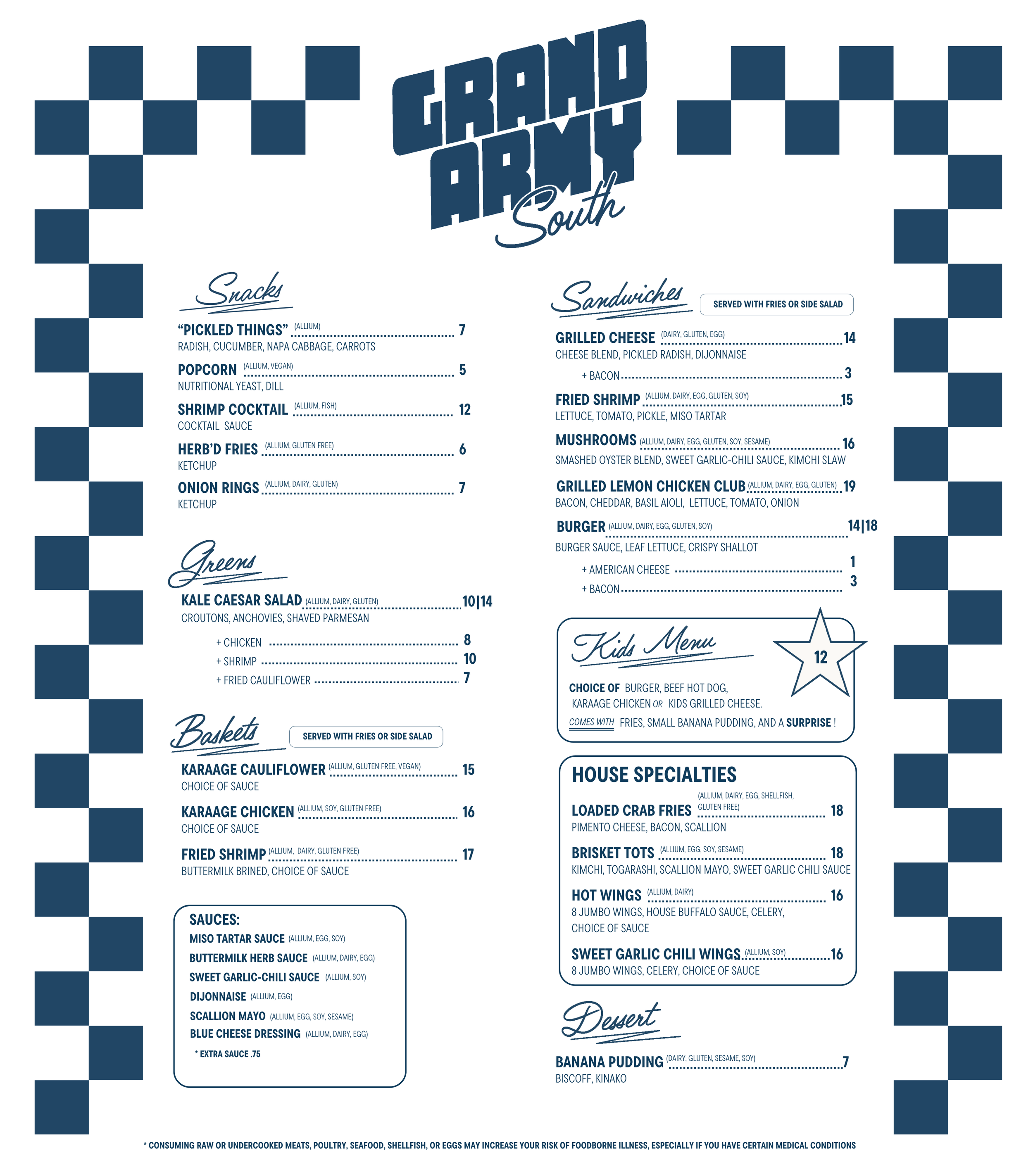Welcome to Grand Army South. A Grand Army kitchen, now cooking at Threes Brewery. 333 Douglass Street Come Visit Grand Army at Threes Brewery! 333 Douglass st. Brooklyn, NY 11217
